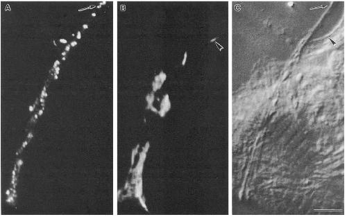 samec ellsl abeledw ith rhodamine-conjugatead-b ungarotoxinC. , Differentiali nterferencec ontrastm icrographo f the samec ells.N ote that the