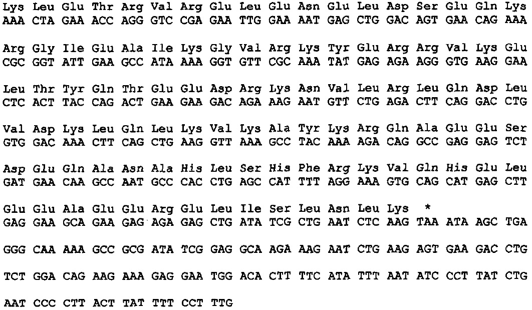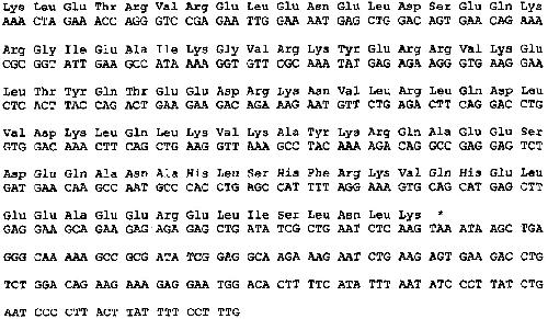 FIG. 2. Nucleotide and derived amino acid sequences of the f3-500 MHC cDNA clone. The sequence is aligned as in the chicken embryonic MHC