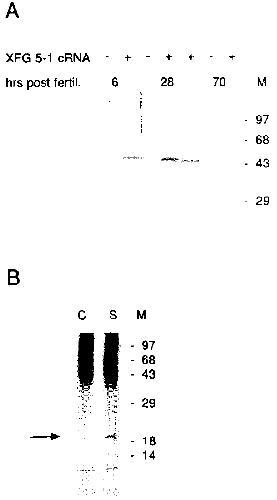 are indicated. (B) XFG 5-1 protein was translated in vitro in the