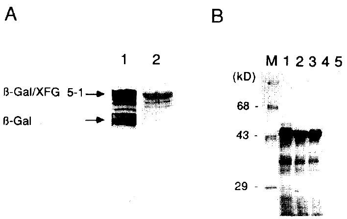 XFG5-1. (A) Aliquots of bacterially expressed XFG 5-1/~-galactosidase