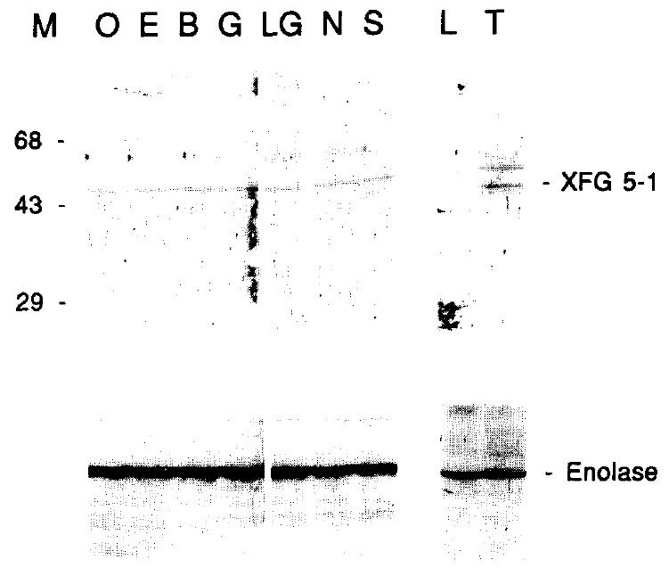 to Western-blot analysis with either immunopurified XFG 5-1 antiserum