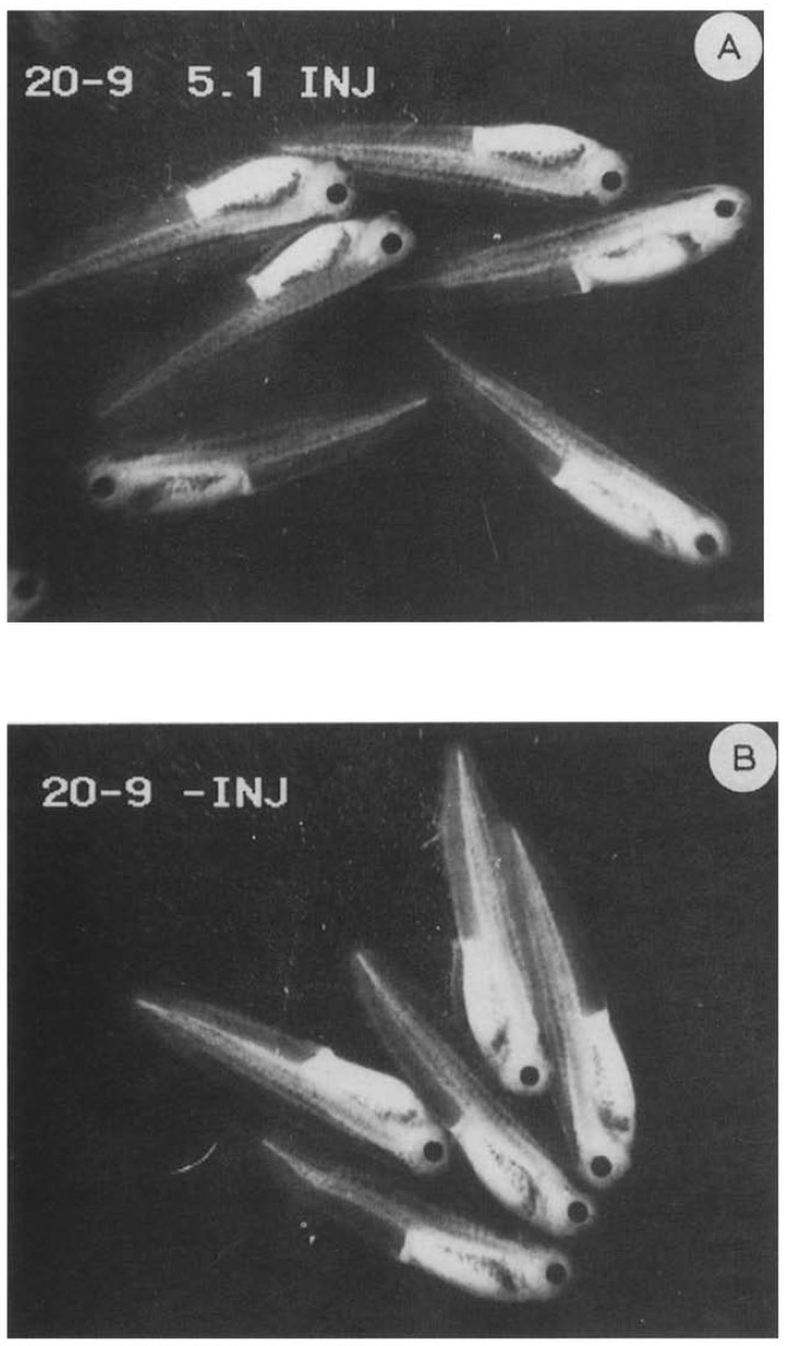 mRNA injected (A) or non-injected control (B) fertilized eggs. These