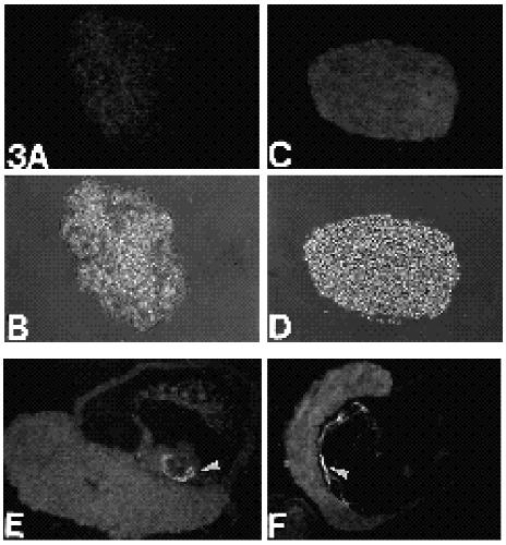 Fig. 4. Immunodetection of a-SM actin in explants isolated at stage 11 and cultured for 5 days. Animal caps (A) and endodermal tissues