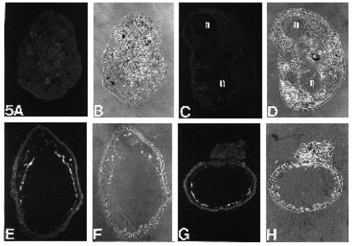the dorsal marginal zone, in which notochord (n) differentiate, are also negative to this antibody; (F) corresponding phase contrast. (G)