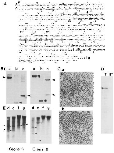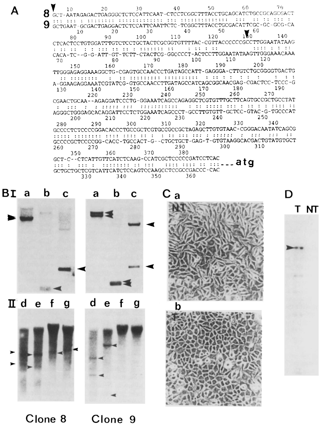 from clone 8 and from clone 9. I: The full-length 5' non-coding region