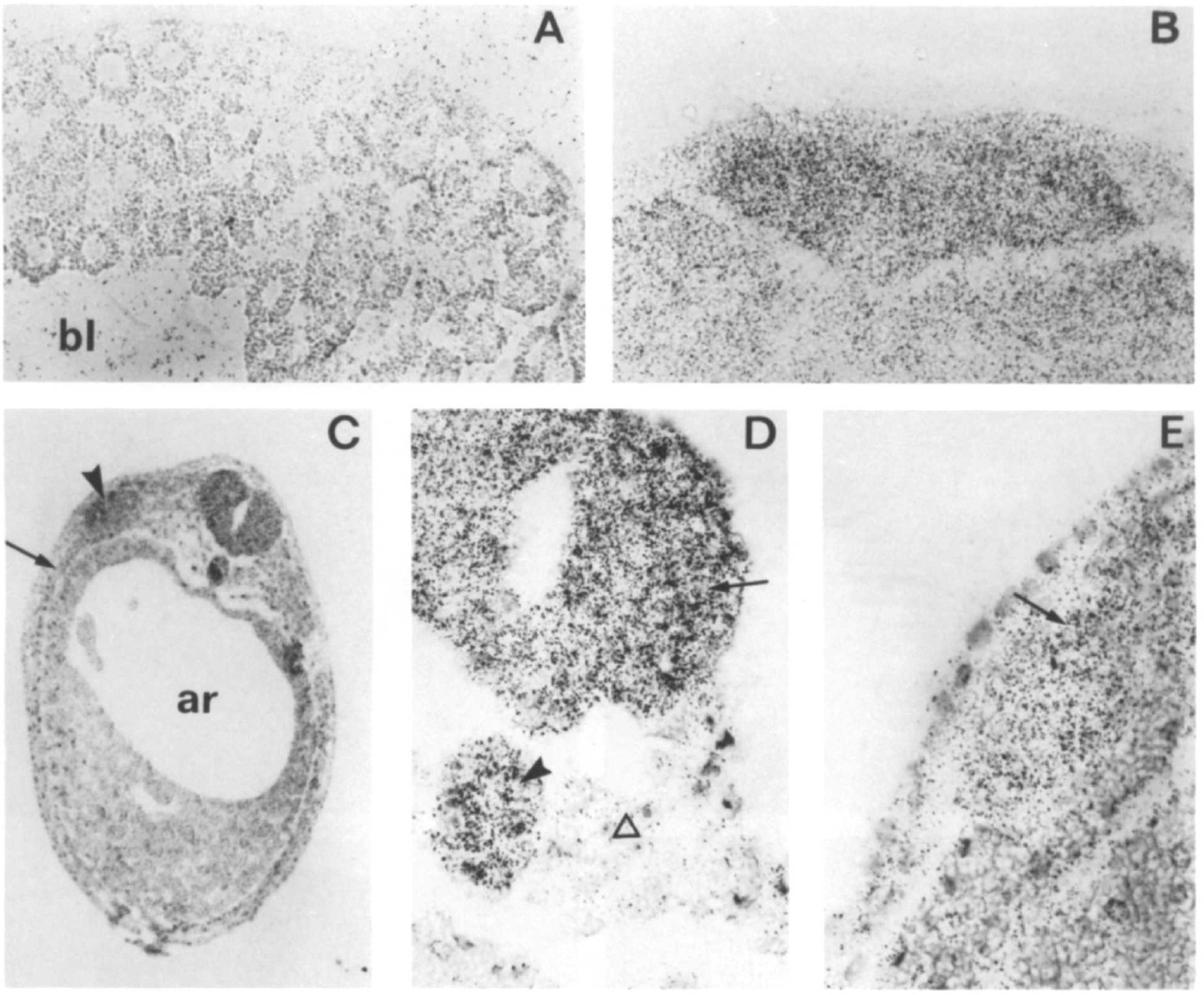 archenteron; bl, blastocoele. A: 250 x : B,D,E: 300 x ; C: 65 x .