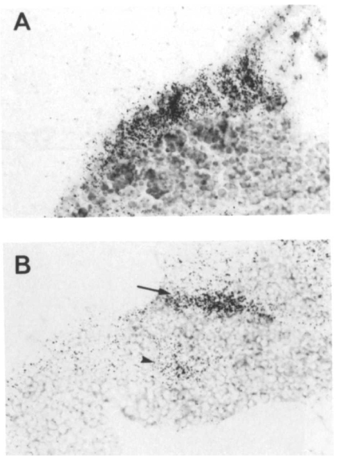 transcripts (arrows) while cardiac muscle is strongly positive.