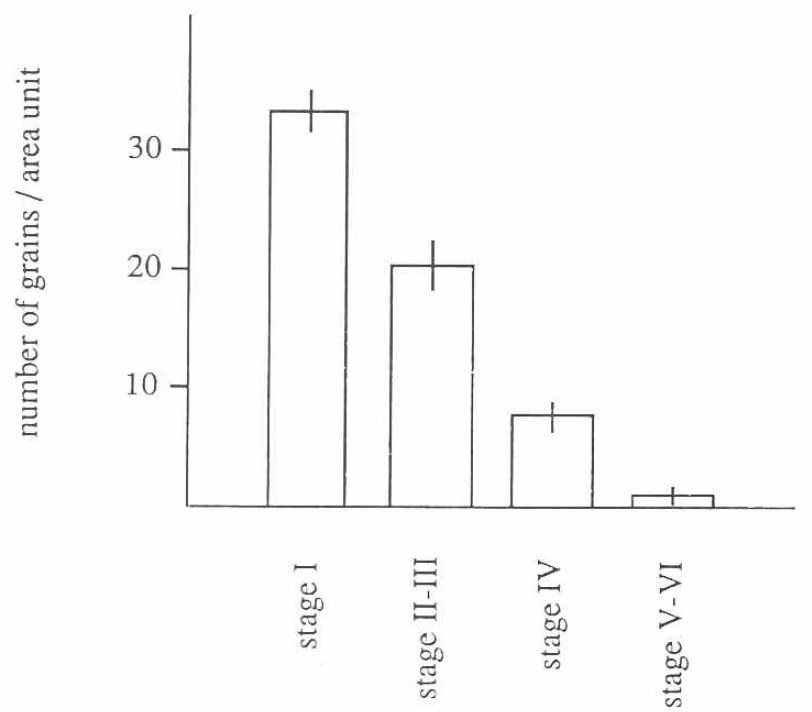 grains over an area unit. The area unit chosen was about one hundredth of
