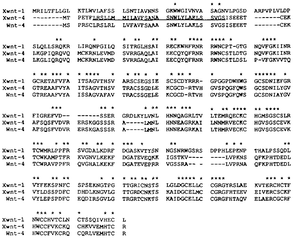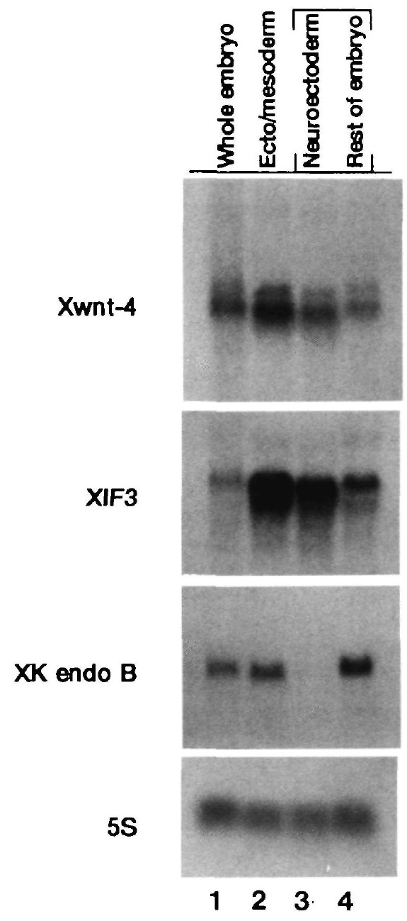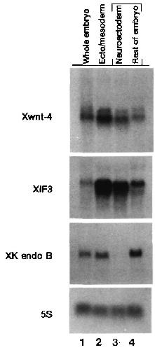 lane. (B) Temporal expression of Xwnt-4 mRNA during