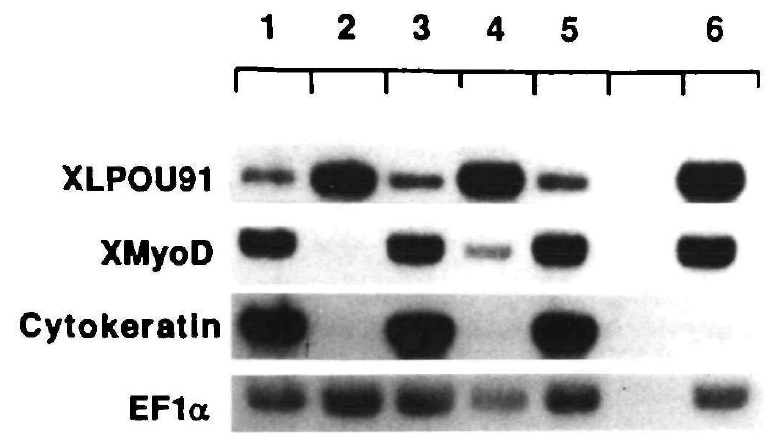 sequentially with eDNA probes of XLPOU91, XMyoD, and EFl a- (see Materials and methods).