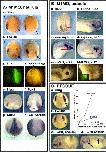 Figure 1. Msx1, Pax3, and Slug Expression in the Presumptive Neural Crest Domain and Msx1 Neural Crest-Inducing Activity In Vivo and in Explants(A) Msx1 (aâd) and Pax3 (aâ²âdâ²) expression in X. laevis at stages 11 (a and aâ²), 13 (b and bâ²), and 16 (câdâ²) costained with Krox20 (dâdâ², indicates third rhombomere). Arrows in aâaâ² indicate the blastopore lips at stage 11. aâaâ², lateral views; bâdâ², dorsal views.(B) Coexpression of Msx1 and Slug by double ISH (Msx1 [blue]; Slug [red]; a; b, dorsal views; aâ²âbâ², transverse sections).(C) Msx1 mRNA was injected in one blastomere at the four cell stage, LacZ is revealed in pink (yellow arrow points at injected side). The embryos were analyzed at early (stage 13, a, c, e, and g) or late (stage 16, b, d, f, and h) neurula stages by ISH for Slug (a and b), Pax3 (c and d), Twist (e and f), and Sox2 (g and h) (red bar, uninjected neural plate half; yellow bar, width of the neural plate on the injected side). Dorsal views.(DâF) RT-PCR analysis of neural, ectoderm and early NC markers: Pax3 and ZicR1 (D); AP-2, Snail, and Slug (E); FoxD3, Pax3, Zic5, and Sox9 (F) after coinjection of Msx1 and Noggin. (D) Lane 4, Noggin (25 pg); lane 5, Msx1 (500 pg); lane 6, Msx1 (500 pg) + Noggin (25pg). (E) Lane 4, Noggin (25 pg); lane 5, Msx1 (100 pg); lane 6, Msx1 (500 pg); lane 7, Msx1 (100 pg) + Noggin (25 pg); lane 8, Msx1 (500 pg) + Noggin (25 pg). (F) Lanes 1â4, as in (E). Lanes 5â7, Msx1 (100â250â500 pg). Lanes 8â10, Noggin (25 pg) + Msx1 mRNA (100â250â500 pg).