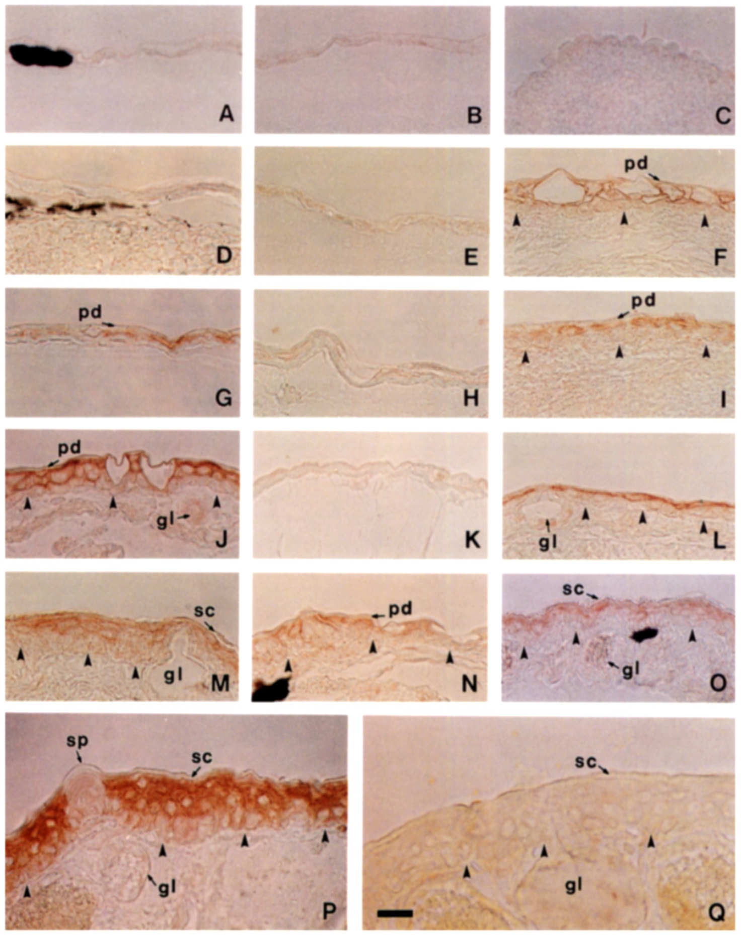 Spatial, temporal, and hormonal regulation of epidermal keratin expression during development of the frog, Xenopus laevis.