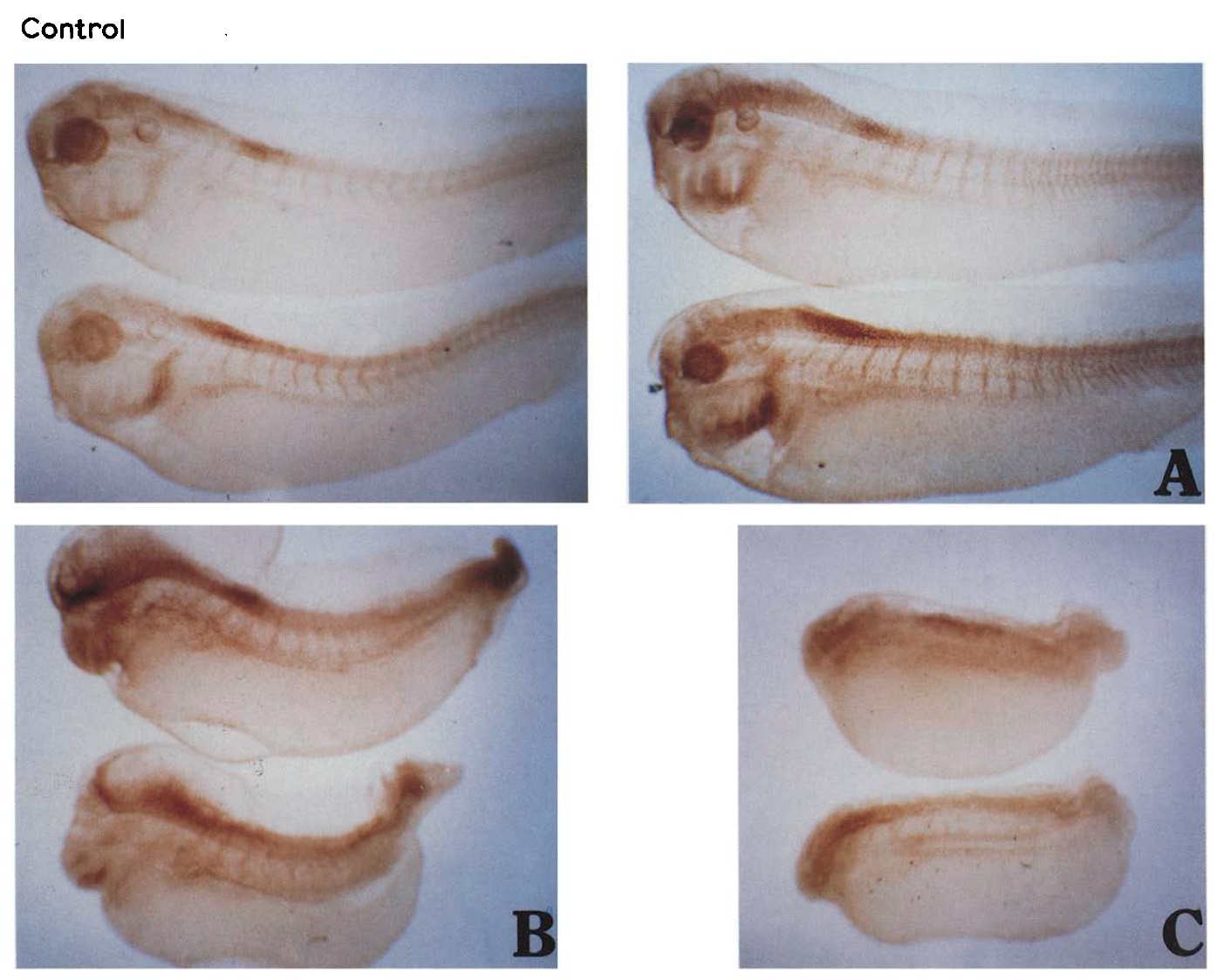 embryo) antibodies. Con, control embryos. (A, B, C) 10 -7, 10 -6, 10 -5 M RA treated embryos at stage 10.25.