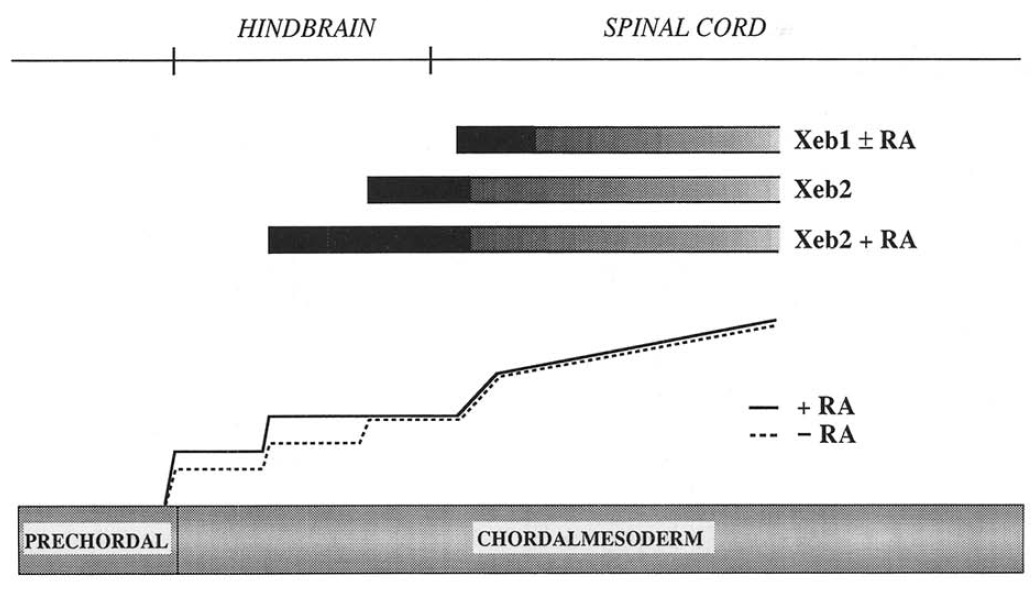 gradient moves the Xeb2 expression boundary to a more anterior position whereas the Xebl domain is not affected by the exogenously applied