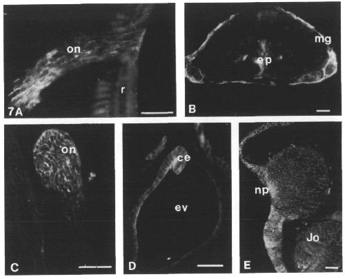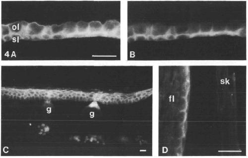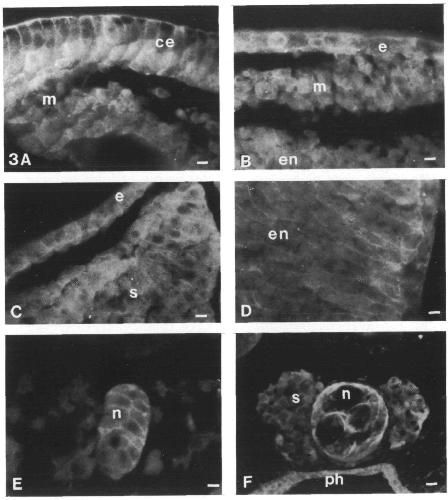 Fig. 3. Immunofluorescent labeling of section of Xenopus larva using anti-EP-cadherin R-827 antibodies. Sections from