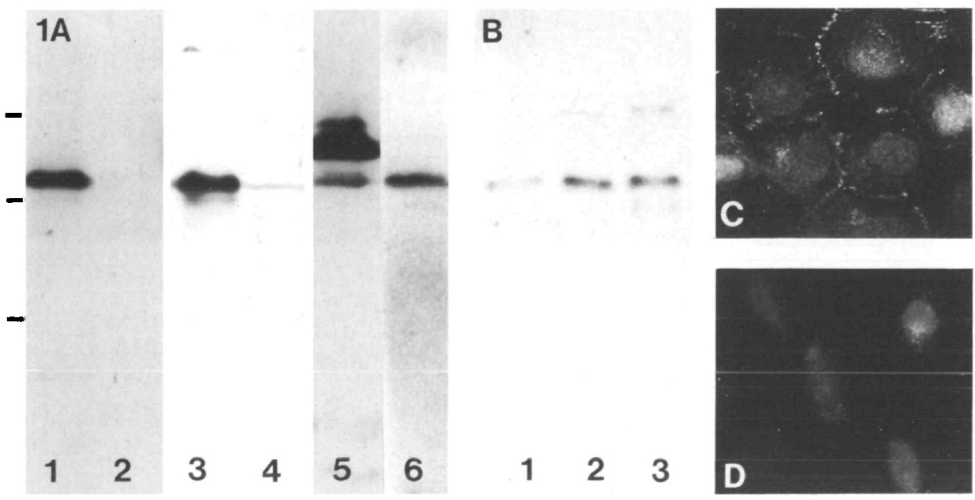 Xenopus epithelial cells (lanes 5,6); the blots were reacted either with the pan-cadherin serum R-156 (lanes 1,2,5) or with
