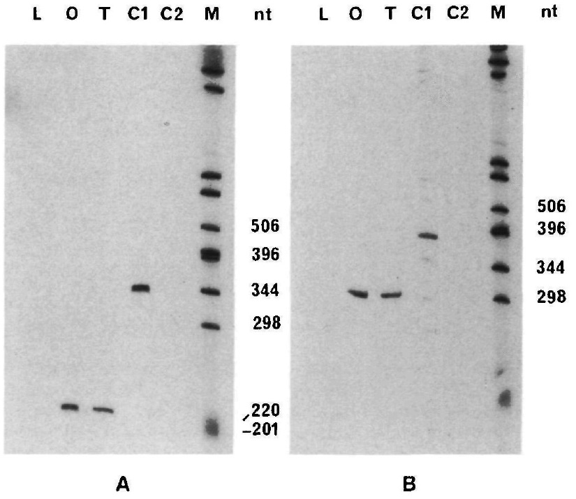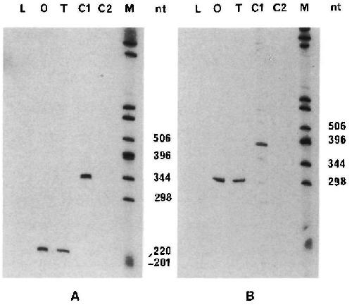 ovary (lanes O) and testis (lanes T). Lanes Cl and C2