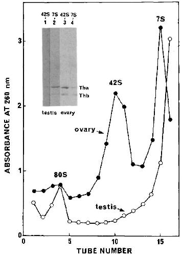 Aliquots (200 A<1) from testis fractions 10 (42S) and 15 (7S)