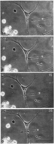 Figs 6 and 7. Temporal growth cones collapsing and retracting from caudal tectal glial cells. After retraction, the cultures