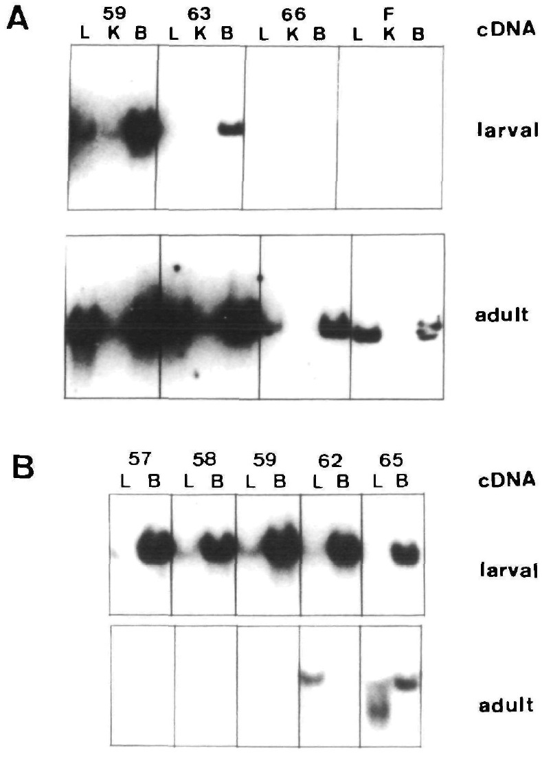 Fig. 5. Distribution of larval- and adult-specific ar-globin