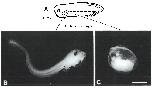 (B) Partial larva and (C) vesicle obtained by in vitro culture of dorsal and ventral fragments, respectively. Bar=1 mm.