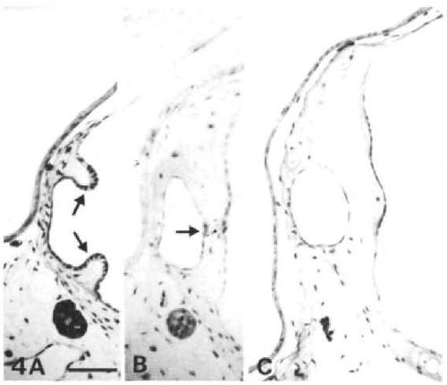 beginning to extend into the ear lumen. (B) Stage 47: three