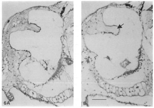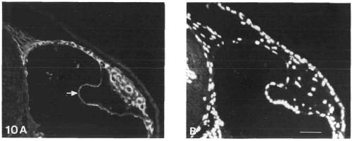 Fig. 10. (A) The chondroitin-sulphate distribution in the inner ear at stage 46.5 as revealed by immunofluorescence with