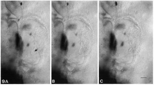 Fig. 9. Collapse of an axial protrusion after Streptomyces hyaluronidase (0.01 nl, lmgml ') is injected into its core, as seen