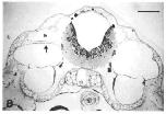 the epithelium of an axial protrusion (arrow) and as expected in the cartilage around the ear but not in the core of the