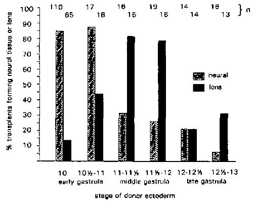 that formed lens or neural tissue at each of the stages