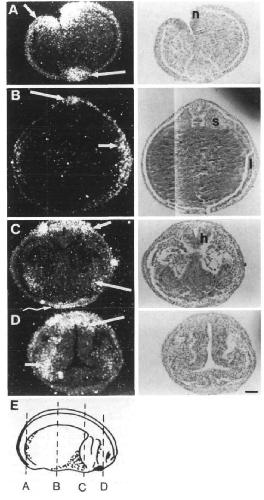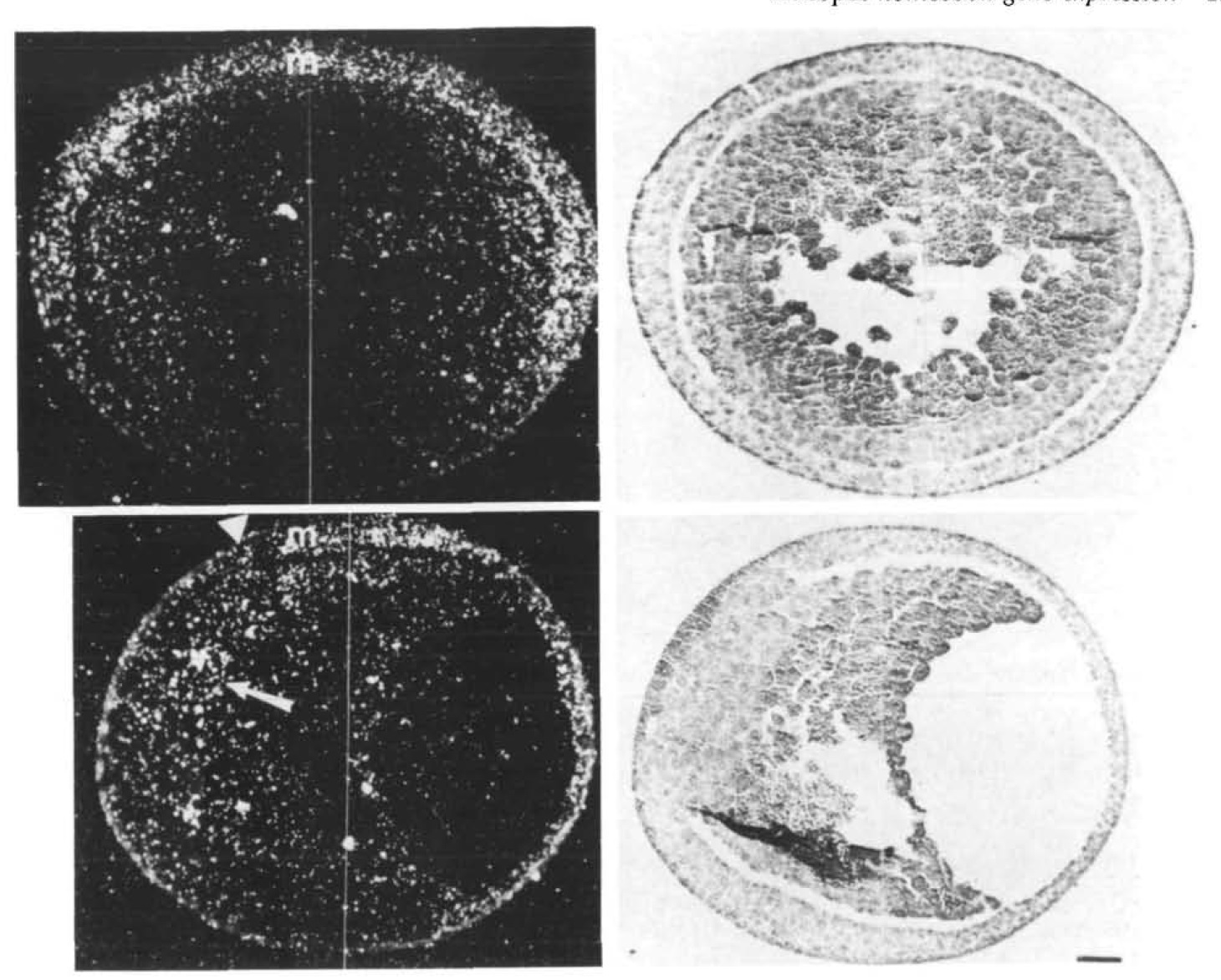 bright-field (right) micrographs. By this stage, the message is detected only at specific sites of the central nervous system,