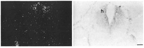 such as cells in the dorsal region of the hindbrain (h). No significant signal was detected with the sense probe (not shown)