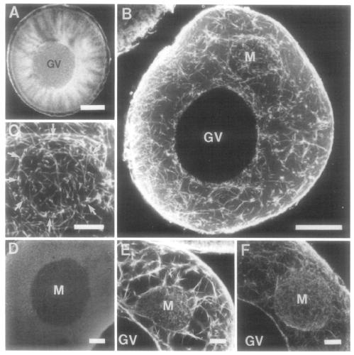 temperature (60x obj; bar is 10 pm). (D) Microtubule nucleation from the vegetal surface of the GV is apparent in this oocyte, 2.5 min after
