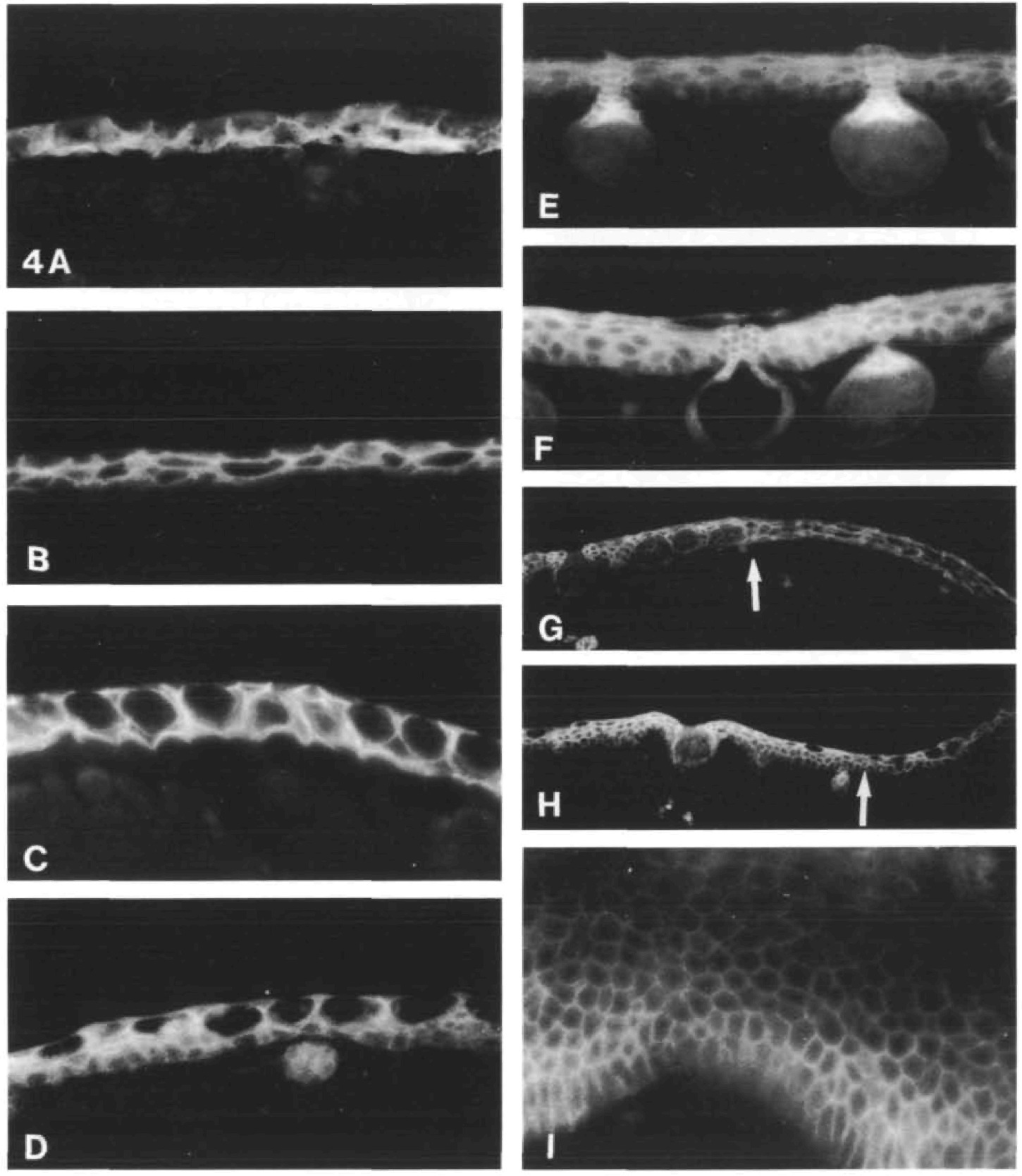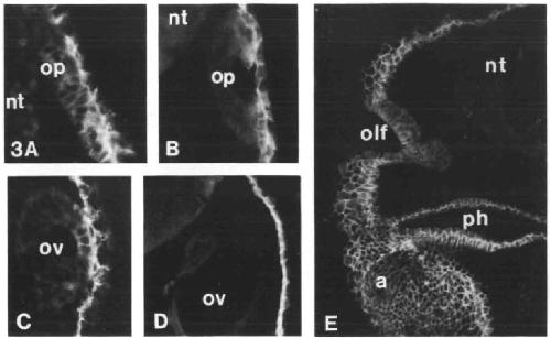 Fig. 2. Distribution of anti-E-cadherin immunoreactivity in Xenopiis neurula. (A) Stage 18 neurula, the ectoderm overlying