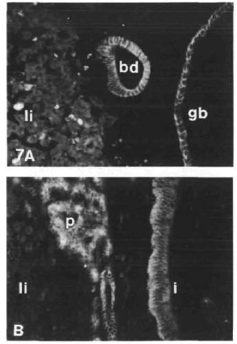 Fig. 8. Distribution of anti-E-cadherin immunoreactivity in adult organs. (A) Lungs; (B) kidney, the tubules, particularly