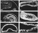 the neural plate region is not stained, B is the phase-contrast image corresponding to A; (C-E) transverse sections at