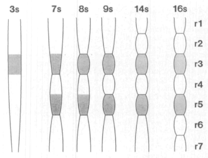 Vaage, 1969). s, somite stage; r, rhombomere.