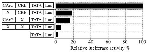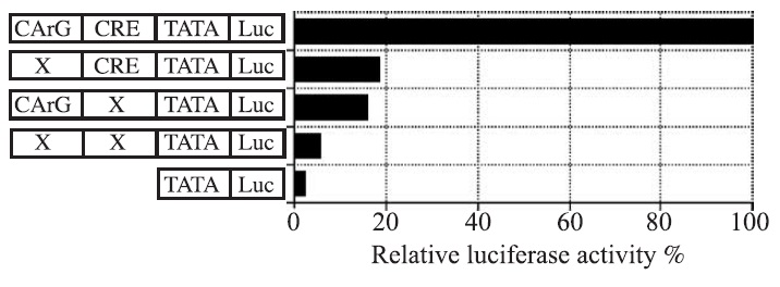 Fig. 4. Analysis of the effects of mutation of CArG-box and CRE on the