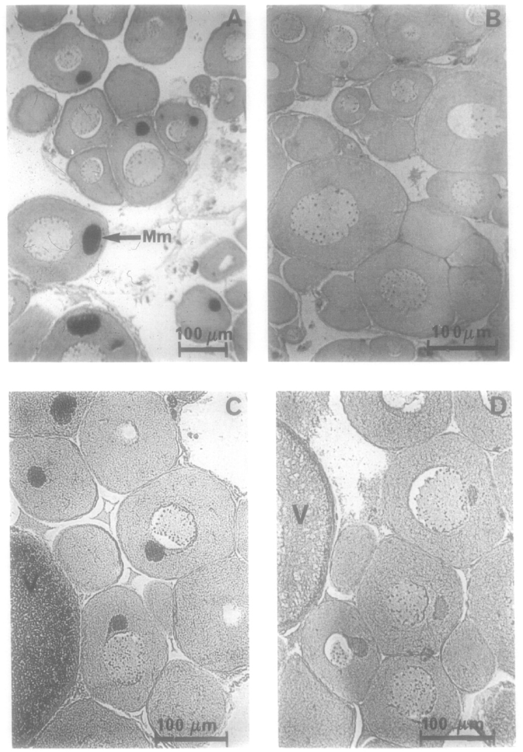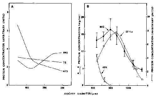 oocytes. Batches of cells sorted out by size were homogenized and fractionated by sucrose density centrifugation. The amounts of 42s