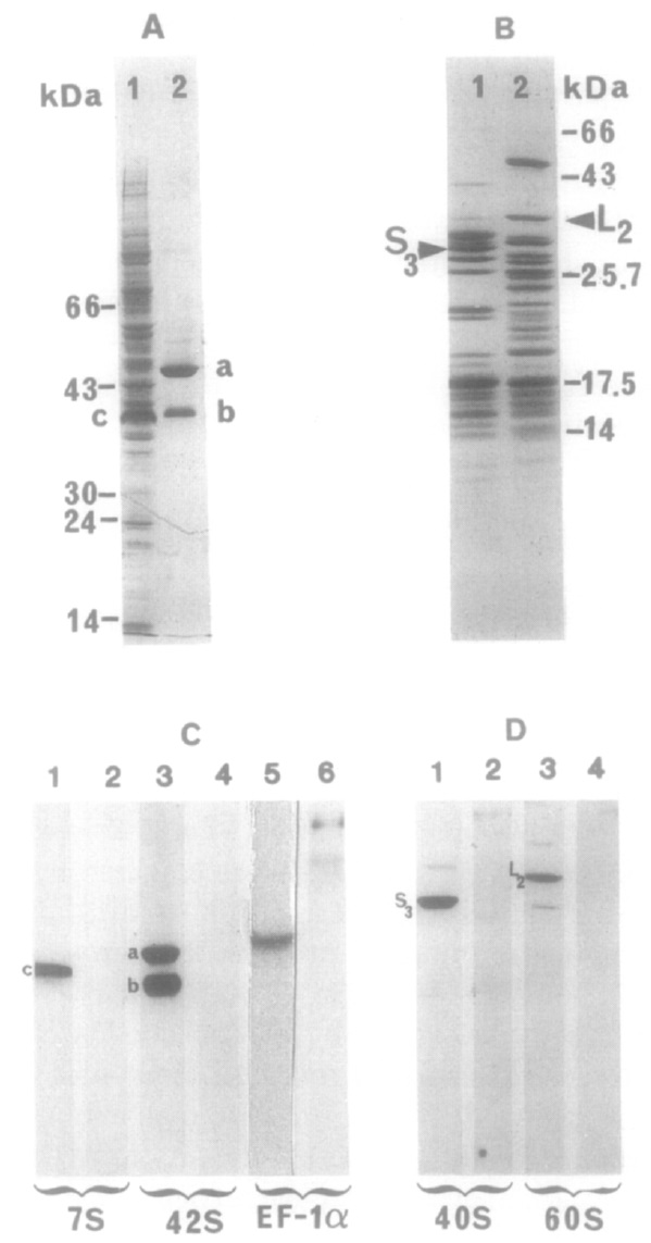 various antisera (C and D). (A) Lane 1: 4-7s fraction; lane 2: 42s fraction.
