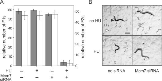 In late mitosis and early G1, replication origins are licensed for subsequent use by loading complexes of the minichromosome maintenance proteins 2-7 (Mcm2-7). The number of Mcm2-7 complexes loaded onto DNA greatly exceeds the number of replication origins used during S phase, but the function of the excess Mcm2-7 is unknown. Using Xenopus laevis egg extracts, we show that these excess Mcm2-7 complexes license additional dormant origins that do not fire during unperturbed S phases because of suppression by a caffeine-sensitive checkpoint pathway. Use of these additional origins can allow complete genome replication in the presence of replication inhibitors. These results suggest that metazoan replication origins are actually comprised of several candidate origins, most of which normally remain dormant unless cells experience replicative stress. Consistent with this model, using Caenorhabditis elegans, we show that partial RNAi-based knockdown of MCMs that has no observable effect under normal conditions causes lethality upon treatment with low, otherwise nontoxic, levels of the replication inhibitor hydroxyurea.