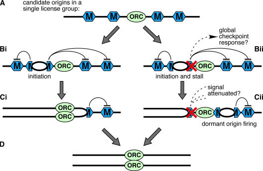 Hyrien, Paradoxes of eukaryotic DNA replication: MCM proteins and the random completion problem. 2003, Pubmed
