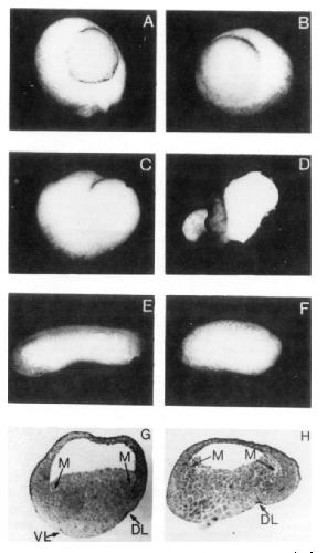 exogastrulated (D) or were delayed in their development (F). Crosssections