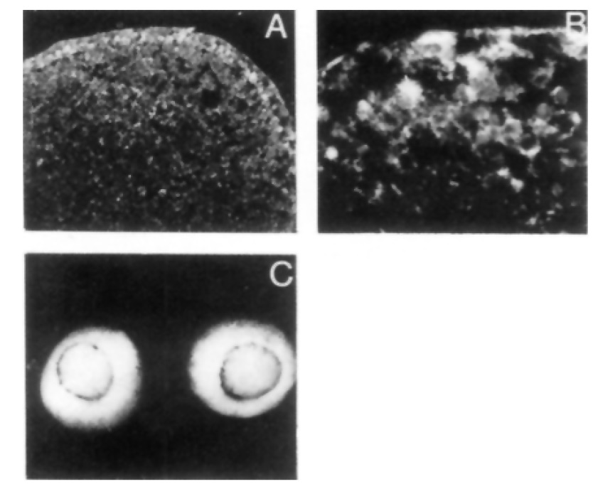 Figure 3. Distribution of the antigen recognized by 3D7 in sections of early Xenopus laevis embryos. 8-#m sections of glutaraldehyde/