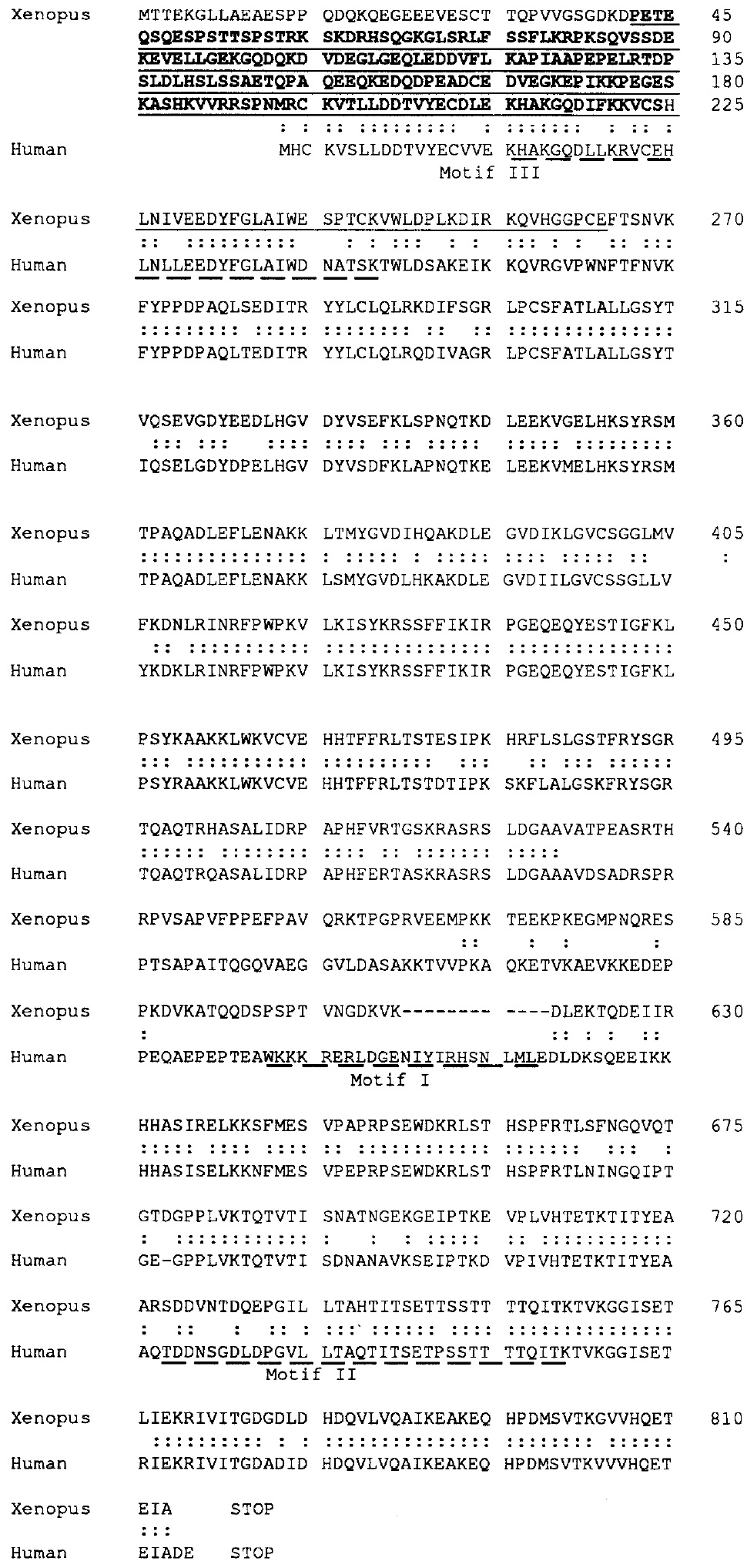 previously described in Tang et aL (1988), are denoted with dashed underlining and labeled with human Motifs I and III present in erythroid but