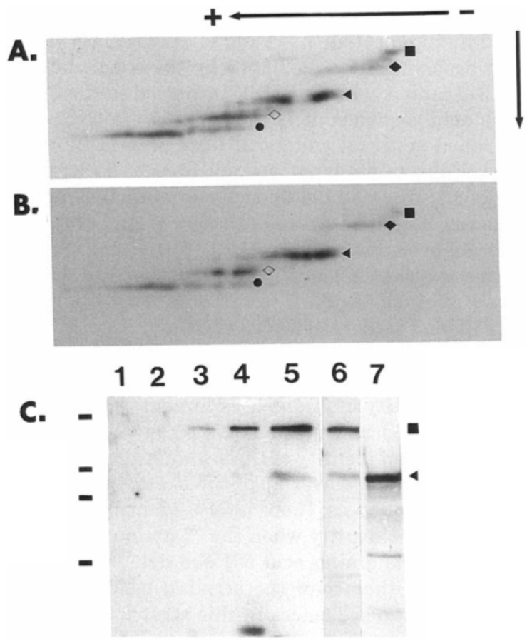 and transferred to nitrocellulose (C). Lanes 1, 2, and 3, contain total