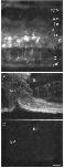 (a) Entire bipolar cells label from their dendritic terminals in the outer plexiform layer (small asterisks) to their axonal terminals (arrowhead)