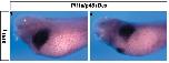 ptf1a (pancreas associated transcription factor 1a) gene expression in Xenopus laevis embryo, assayed via in situ hybridization, NF stage 41, lateral view, anterior left, dorsal up.