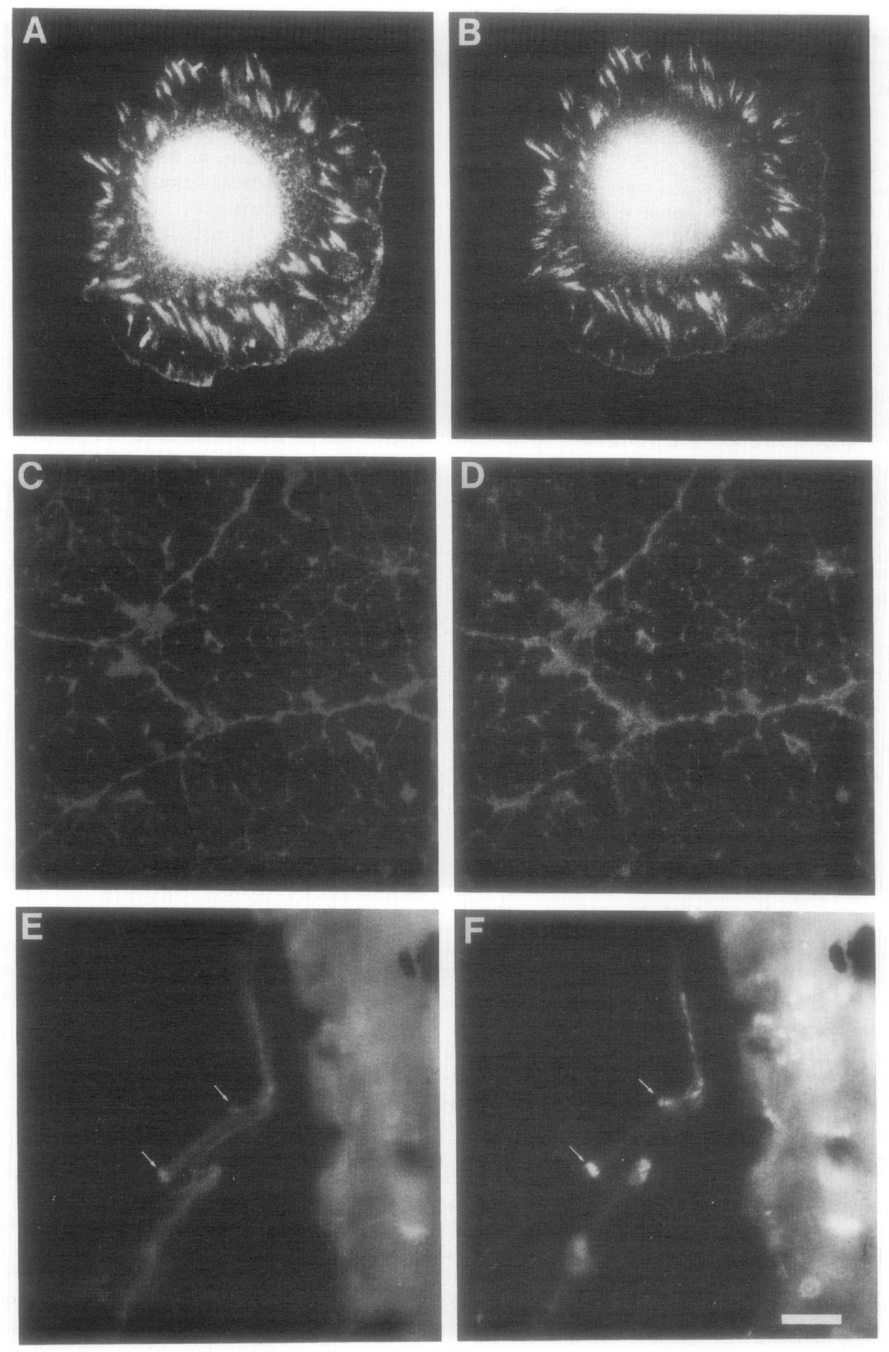 FIG. 5. Immunofluorescent staining of sectioned Xenom egg with anti-talin and anti-vinculin antibodies. Panels A and B show a sectioned