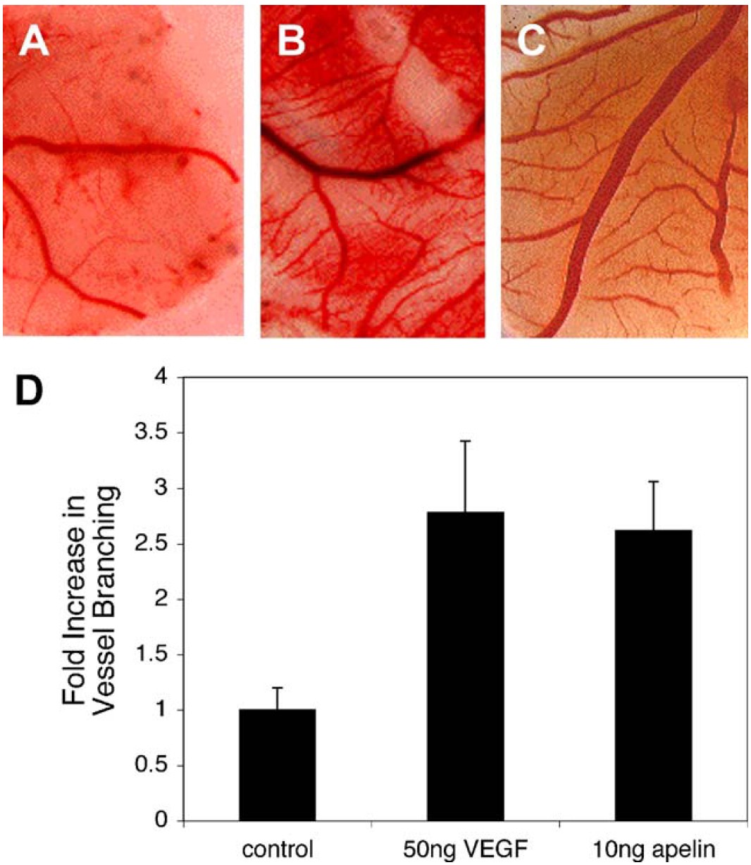 Fig. 5. Apelin is an angiogenic factor in the chicken chorioallantoic membrane